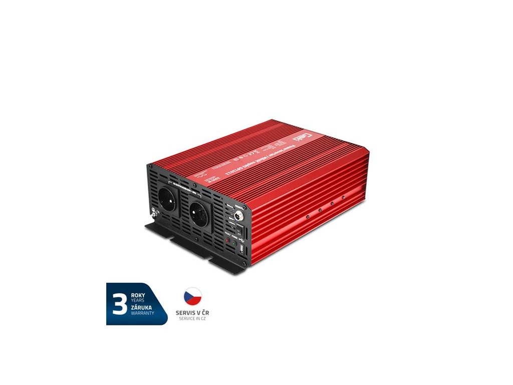 Invertor - Menič vytvára z jednosmerného napätia 12V striedavé napätie 230V . To umožňuje pripojenie najrôznejších spotrebičov 230 V k zdroju napätia ako napr. v aute, na člne, pri solárnych zariadeniach na chatách alebo pri kempovaní. Ideálne na pripojenie digitálnej kamery, mobilného telefónu, notebooku, tlačiarne, lampy, CD/DVD prehrávača, rádia atď s maximálnym príkonom do 2000W. Menič je tiež vybavený USB výstupom pre napájanie rôznych zariadení cez rozhranie typu USB 2.0. Prístroj obsahuje ochranu proti opačnej polarite, nízkemu/vysokému napätiu, skratu, preťaženiu, prehriatiu a vysokému/nízkemu napätiu batérie. Zvlnenie výstupného napätia má tvar modifikovanej sínusoidy.