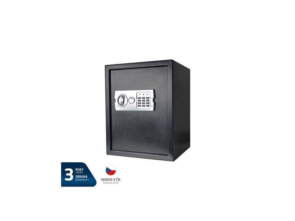 Trezor Geti E45DC (450x350x350mm)Na tento výrobok poskytujeme 3 roky záruku. S týmto trezorom budú vaše cennosti v naprostom bezpečí. Môžete ho zamurovať alebo pripevniť k múru alebo podlahe. Elektronický zámok na PIN kód Vám umožní jednoduchú obsluhu. Pomocou dodaného kľúča je možné otvoriť trezor aj pri vybitých batériách.