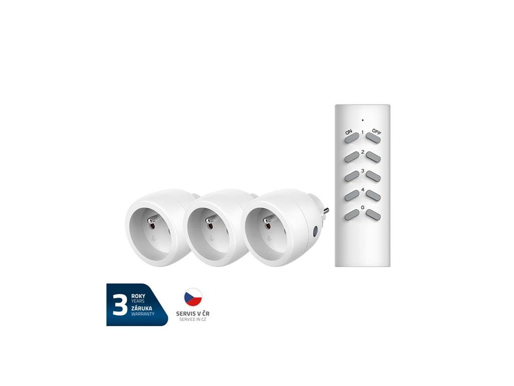 - obsah balenia: 3 zásuvky, 1 diaľkový ovládač