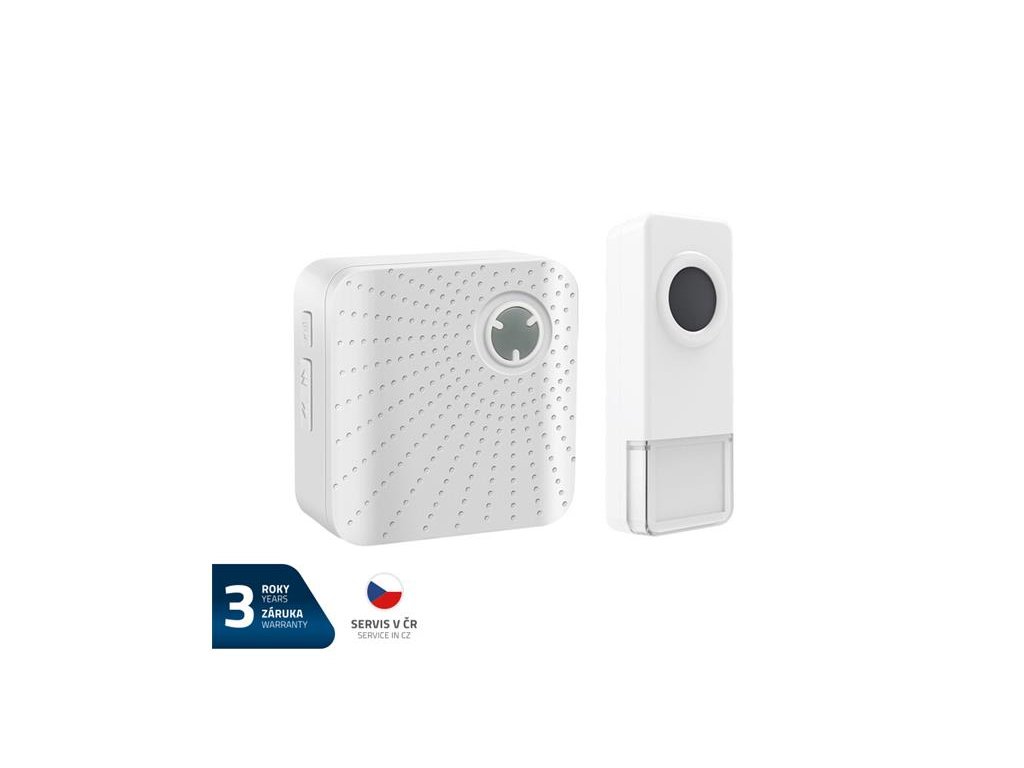 Súčasť balenia: zvonček, tlačidlo, návod, 2 skrutky, 2 hmoždinky, skrutkovač