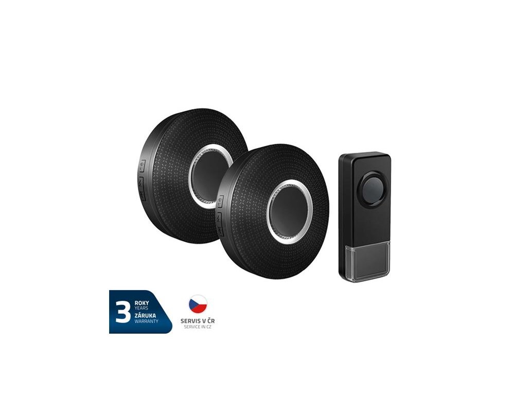 Zvonček bezdrôtový Geti GWD 205B sadaNa tento výrobok poskytujeme 3 roky záruku. Sada 2 domovných zvončekov a 1 tlačidla GETI GWD 205 B sa hodí nielen k domu alebo bytu, ale aj do kancelárií, tovární a recepčných hál. Veľkou výhodou zvončekov je ich bezdrôtové prevedenie s dosahom do 300 m vo voľnom priestore. Inštalácia zvončekov je veľmi jednoduchá, spárovanie medzi vysielačom a zvončekom prebieha automaticky. Funkcia LEARNING CODE navyše umožňuje spárovanie viacerých tlačidiel a zvončekov. Nemusíte sa obávať ani dažďa, tlačidlo vysielača s LED indikáciou je vodotesné. Zvončeky majú jednoduchý moderný dizajn, 4 stupne hlasitosti, výber z 52 melódií a svetelnú signalizáciu zvonenia. Veľkou výhodou zvončekov je zapamätanie si nastavenej melodie a hlasitosti aj po odpojení prístroja od elektrickej siete.