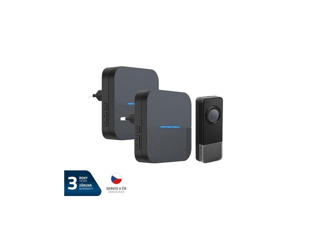 Na tento výrobok poskytujeme 3 roky záruku. Sada 2 domovných zvončekov a 1 tlačidla GETI GWD207B sa hodí nielen k domu alebo bytu, ale aj do kancelárií, tovární a recepčných hál. Veľkou výhodou zvončekov je ich bezdrôtové provedenie s dosahom do 300 m vo voľnom priestore. Inštalácia zvončekov je veľmi jednoduchá, spárovanie medzi vysielačom a zvončekom prebieha automaticky. Funkcia LEARNING CODE navyše umožňuje spárovanie viacerých tlačidiel a zvončekov. Nemusíte sa obávať ani dažďa, tlačidlo vysielača s LED indikáciou je vodotesné. Zvončeky majú jednoduchý moderný dizajn, 5 stupnov hlasitosti, výber z 58 melódií a svetelnú signalizáciu zvonenia. Veľkou výhodou zvončekov je zapamätanie si nastavenej melódie a hlasitosti aj po odpojení prístroja od elektrickej siete.