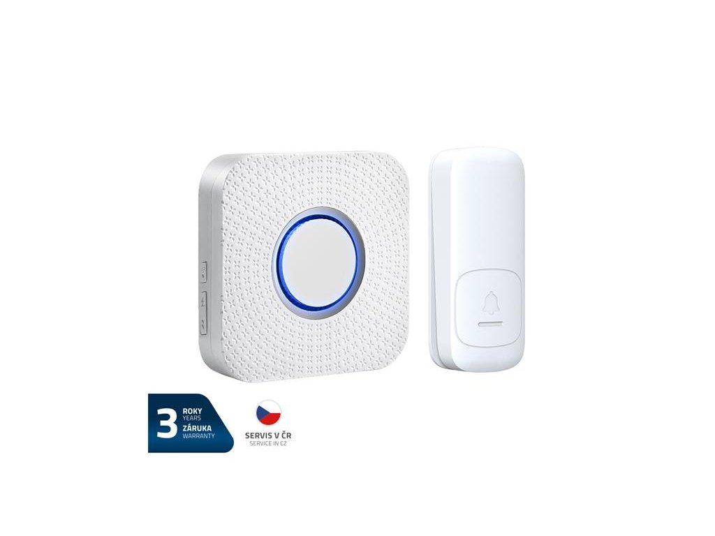 Súčasť balenia: zvonček, tlačidlo, návod, 2 skrutky, 2 hmoždinky, skrutkovač.
