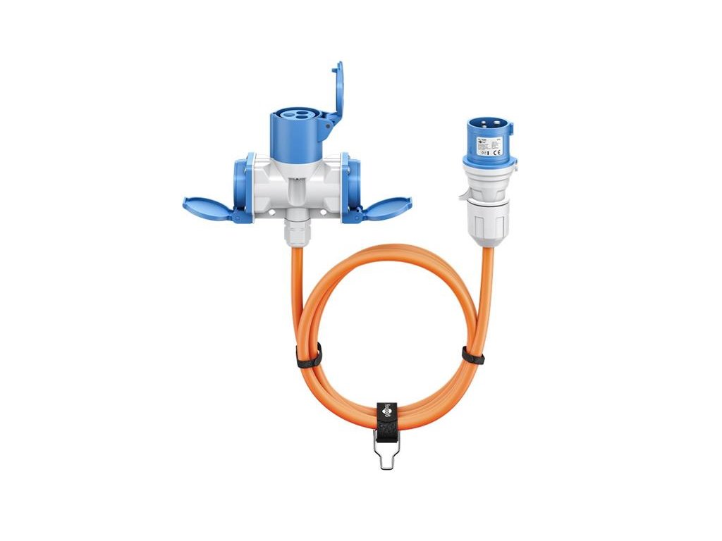 Nevyhnutné príslušenstvo pre kempovanie: CEE adaptér s kombinovanou zásuvkou na pripojenie obytného vozidla, karavanu alebo prívesu k elektrickej sieti v kempe