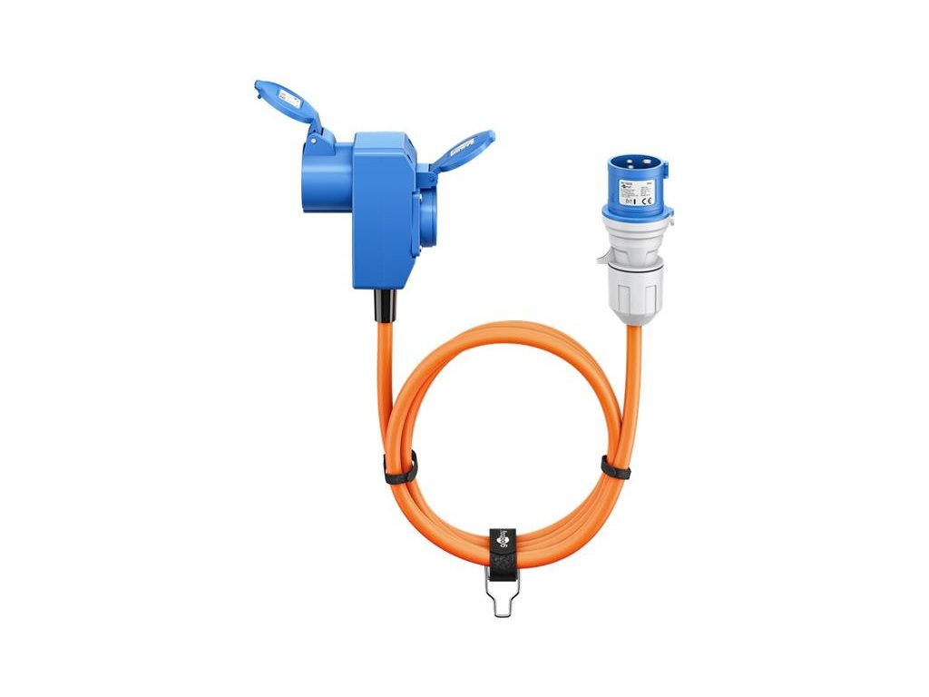 Nevyhnutné príslušenstvo pre kempovanie: CEE adaptér s kombinovanou zásuvkou na pripojenie obytného vozidla, karavanu alebo prívesu k elektrickej sieti v kempe