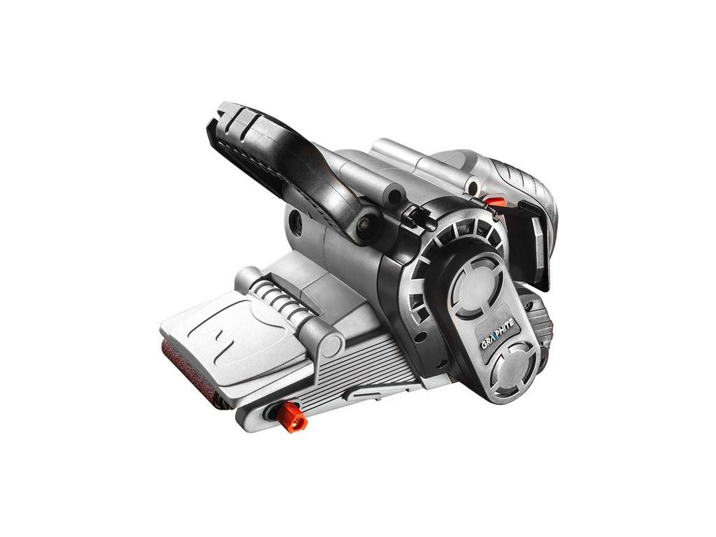 Špeciálna pásová brúska GRAPHITE (ref. Č. 59G392) s 800 W motorom je určená na spracovanie dreva a materiálov podobných drevu, kovov a plastov. Nástroj ponúka ergonomický tvar a moderný dizajn, má protišmykovú vrstvu na hlavnej rukoväti a ďalšie rukoväť, ktorá umožňuje rýchle nastavenie uhla. Vedenie brúsneho valca je vyrobené z hliníkovej zliatiny odolnej voči vysokým teplotám a poškodením. Malý priemer predného valca (16,5 mm) umožňuje brúsenie na ťažko prístupných miestach. Okrem toho je nástroj vybavený zaistením spínače nepretržitej prevádzky a umožňuje odtiahnuť kryt nekonečného pásu. Maximálna rýchlosť pásu je 260 metrov za minútu. Náradie je vybavené pružným a silným napájacím káblom v pogumovanie, dlhým 3 m, určeným aj pre profesionálne a priemyselné aplikácie pre použitie vo vnútri aj vonku. Brúska je dodávaná v sade s prachovým sáčkom a nekonečným pásom s rozmermi 75x457 mm. Súlad s európskymi normami je potvrdený certifikátom CE.