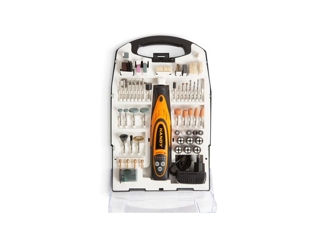 Brúsny, gravírovací a vŕtací stroj HANDY DRILL bol špeciálne vyvinutý pre domáce použitie, manikúru / pedikúru a domácich majstrov.Vďaka zabudovanému akumulátoru môžete pracovať bez káblov kdekoľvek. Umožňuje vám vŕtanie, leštenie, gravírovanie alebo dokonca vyrezávať menších otvorov.Môže to byť ideálne riešenie na odstránenie okrajov otrepov. Maximálna kapacita otvoru Ø3,2 mm.Rôzne doplnky sa dajú ľahko a rýchlo pripojiť. Vďaka svojim kompaktným rozmerom a hmotnosti je s náradím ľahká manipulácia aj na ťažko dostupných miestach. Môže byť vhodný aj na presné obrábanie dreva, kovu a plastov.
