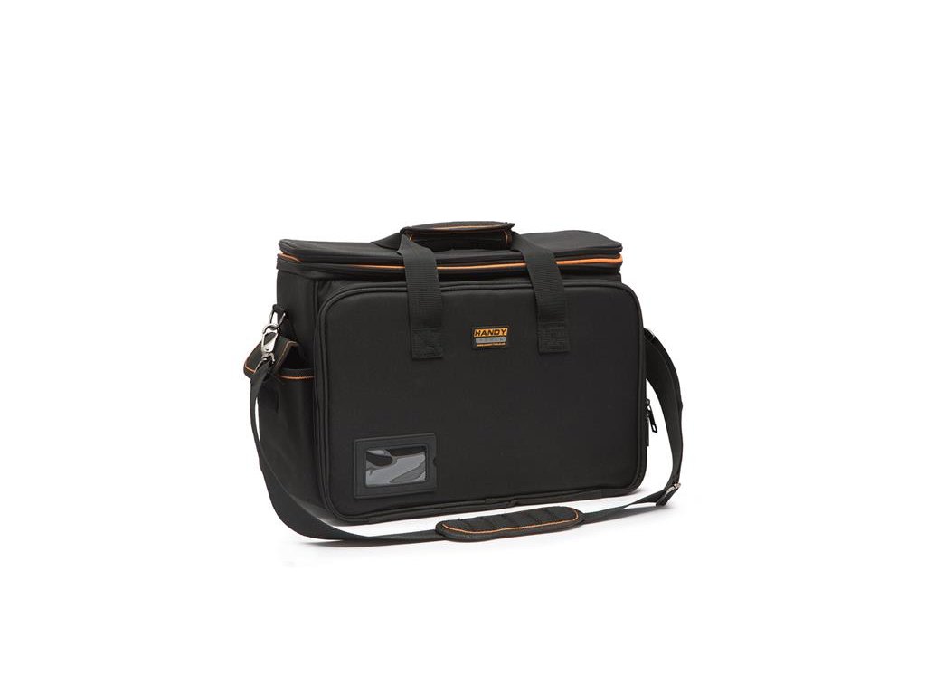 Multifunkčná taška (na náradie, foto doplnky, osobné veci a pod.) patrí medzi novinky na trhu vzhľadom na široké ponúkané možnosti použitia. Po otvorení taška ponúka 3 časti, v strednej časti s pevnenými stenami sú 3 fixné vrecká na suchý zips, ktoré je možné vybrať. Vrchná strana s dvojitým zipsom má vrecko so sieťkou. Obidve bočné časti sú na zips, majú bočné vrecká, odkladacie miesta s gumičkami a veľa ďalších odkladacích miest. Všetko to je určené pre čo najpohodlnejšie nosenie a uloženie. Predu a v zadu sú hloboké vrecká na suchý zips. Tašku je možné nosiť v ruke alebo na pleci pomocou nastaviteľného širokého popruhu s vypchávkou.