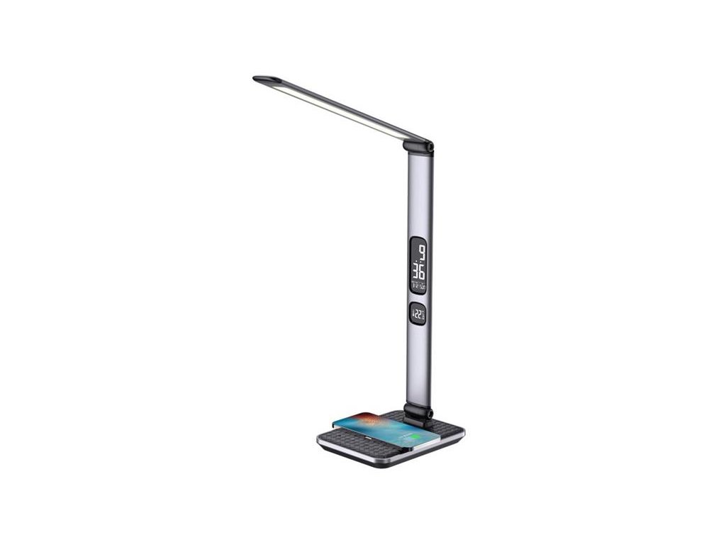 LED stolná lampička Heron 2 v modernom dizajne so sklápacím ramenom a informačným panelom v krásnom prevedení v špičkovom spracovaní. Lampička je vybavená funkciou bezdrôtového nabíjania Qi a USB portom na nabíjanie smartfónov a ďalších zariadení.