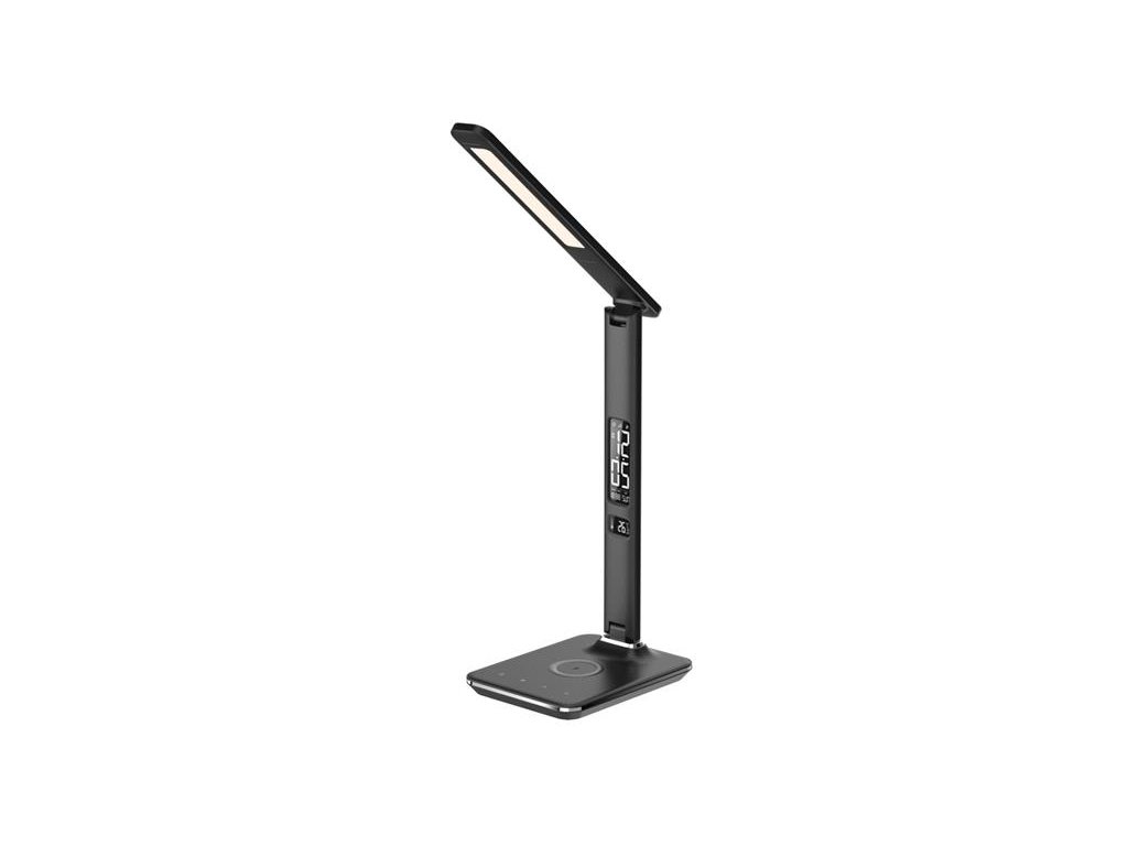 Lampa stolná IMMAX KINGFISHER Qi BLACK 08965LLED stolná lampička Immax Kingfisher s bezdrôtovým nabíjaním QI alebo nabíjaním cez USB port.Lampička disponuje zmenou teploty svetla-teplá, prírodné alebo studená farba. Displej obsahuje údaje o čase, dátume a teplote. Čierna imitácia kože pôsobí štýlovým dojmom, ako v kancelárii, tak v detskej izbe. Kingfisher Qi je vylepšená verzia obľúbenej LED lampičky s dizajnom imitácia čiernej kože "s prešívaním". Kingfisher Qi je ideálnym úsporným a funkčným doplnkom nielen do kancelárie. Lampička je vybavená bezdrôtovou nabíjačkou štandardu Qi, ponúkajúca porovnateľnú účinnosť s klasickými drôtovými nabíječkami.Nově je doplnená aj o nabíjanie cez USB port. Mobilný telefón s podporou bezdrôtového nabíjania sa začne nabíjať pri obyčajnom položení na nabíjaciu plochu. Dotykové ovládanie umožnuje stmievania a voľbu farby světla.Je dokázané, že ak potrebujete zlepšiť sústredenie na prácu je vhodné použiť svetlo studenej, ktoré viac stimuluje mozog a tým zlepšuje pracovnú výkonnosť. Ak už máte odpracovaných môžete použiť svetlo prírodné, ktoré je neutrálne a je najviac podobné dennému svetlu. A na úplnú relaxáciu či len svetelný podtón v miestnosti slúži farba teplá biela, ktorá navodzuje relaxačnú atmosféru. Displej na lampičke zobrazuje dátum, čas, aktuálnu teplotu v miestnosti. Súčasťou lampy je aj integrovaný budík. Koho by osvetlenie displeja rušilo, možno ho ľahko úplne vypnúť.