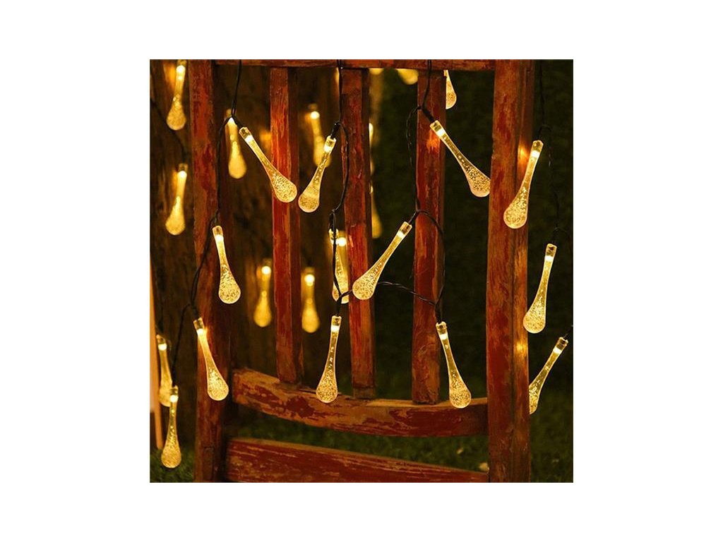 Reťaz je osadená elegantnými LED svetielkami v tvare kvapiek, ktoré pri rozsvietení vytvárajú mäkké a teplé svetlo. Kvapky majú textúru jemne pokrčeného skla, čo dodáva celkovému dojmu luxusný nádych. Akonáhle sa zotmie, svetielka sa automaticky rozsvieti vďaka zabudovanému senzoru.