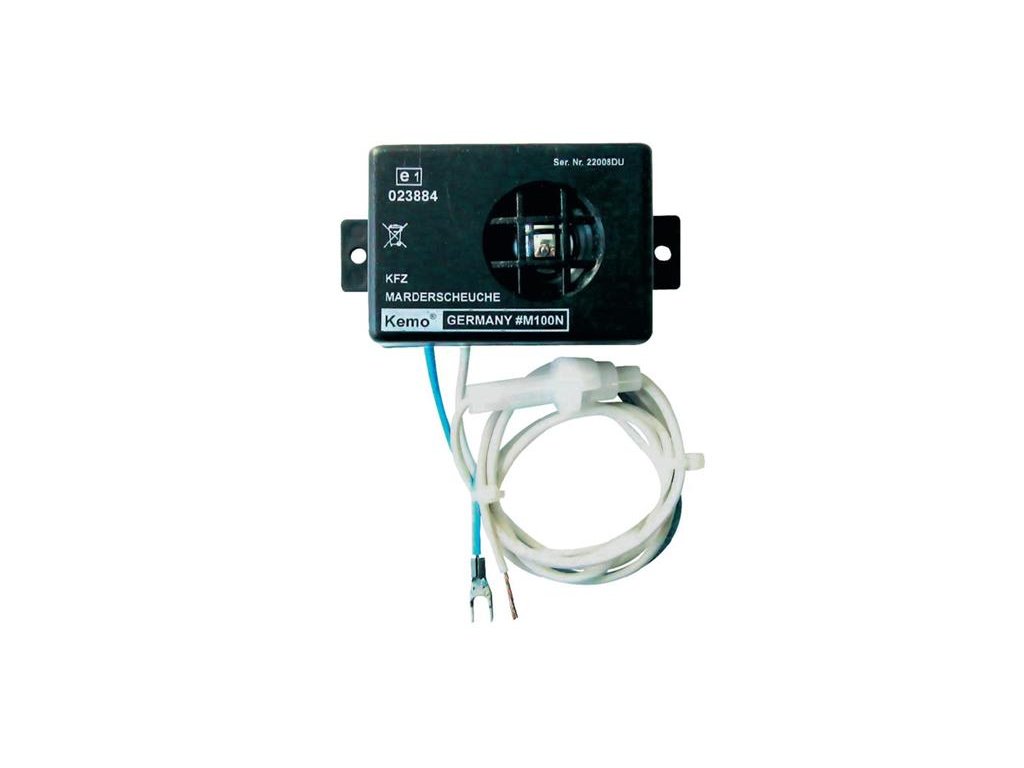 Odpudzovač kún KEMO M100N do autaEfektívna ochrana proti škodám, ktoré spôsobujú kuny. Generuje agresívny ultrazvukový tón, ktorý je kunám nepríjemný, a preto sa mu vyhýbajú. Vysoké ultrazvukové tóny nie sú pre ľudí počuteľné. Zariadenie je napájané z elektrickej siete automobilu 12 V a je určené na montáž do motorového priestoru. Elektronika je chránená proti nečistotám a vlhkosti.