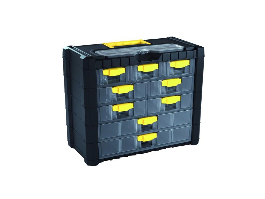 Organizér prenosný/závesný 10 priehradiek Prosperplast NS501Prenosný organizér s 9 výsuvnými zásuvkami a jedným úložným priestorom na veku. Organizér môžete zavesiť na stenu alebo uložiť na stôl do regálu. Tento organizér je vhodný pre uloženie malých alebo väčších vecí (skrutky, skrutky, matice, podložky, tesnenia, náhradné diely atď.). Úložný systém MULTICASE CARGO používajú domácnosti, obchodné spoločnosti, workshopy atď. S týmto organizérom budete mať všetko na jednom mieste. Zásuvky sú zabezpečené proti samovoľnému vysunutiu.