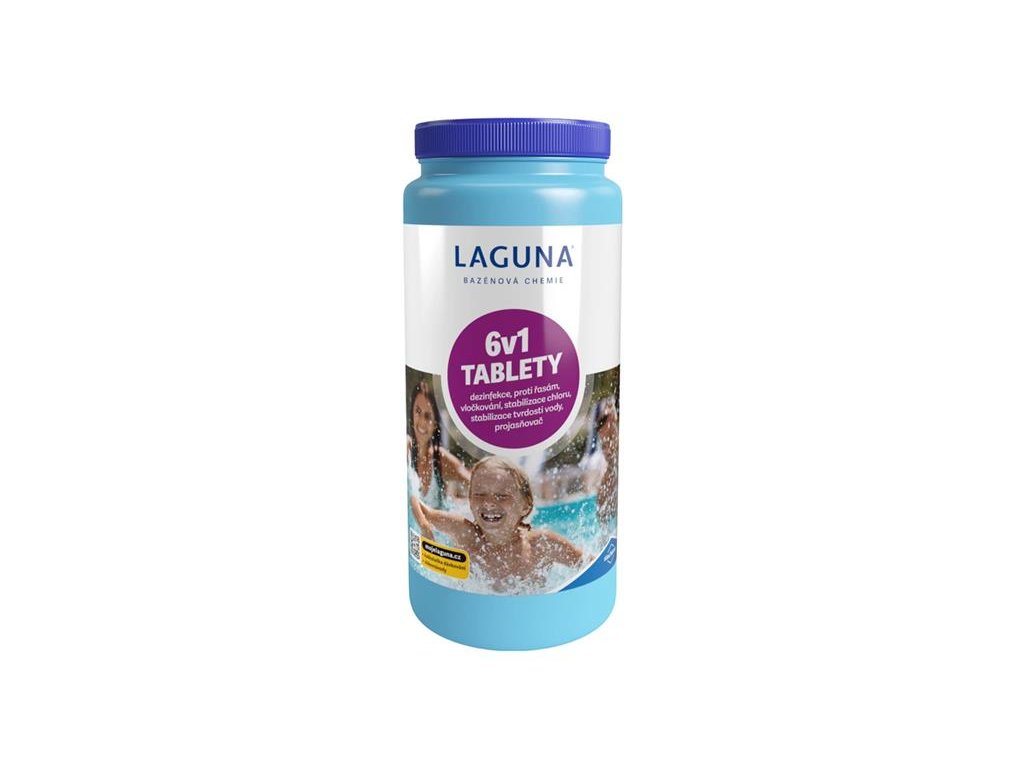 Moderný viacúčelový prípravok (tableta 200 g) na celosezónnu priebežnú údržbu vody vo všetkých typoch bazénov. LAGUNA TABLETY 6 v 1 je moderný viacúčelový prípravok na celosezónnu priebežnú údržbu vody vo všetkých typoch bazénov. Likviduje baktérie a riasy, zabraňuje ich rastu, umožňuje vyvločkovanie nečistôt, stabilizuje aktívny chlór, tvrdosť vody, prejasňuje (zlepšuje efektivitu filtrácie).