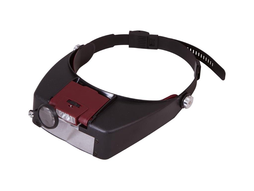 Náhlavná lupa Levenhuk Zeno Vizor H2 sa k hlave upevňuje pomocou špeciálnej čelenky s nastaviteľnou dĺžkou. Lupa je vybavená LED osvetlením, ktoré slúži na nasvietenie pracovnej plochy. Pomocou prepínača na tele lupy môžete osvetlenie podľa potreby zapínať a vypínať.