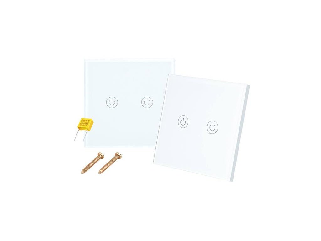 Moderný, minimalistický dvojitý vypínač svetla z tvrdeného skla.