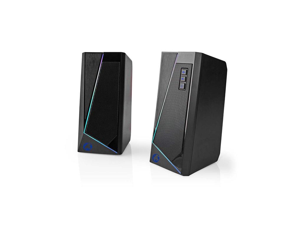 Táto výkonná a štýlová Nedis sada so stereofónnym zvukom posúva každý herný zážitok na novú úroveň. Súprava sa skladá zo systému 2.0 s dvoma satelitnými reproduktormi, čo je najobľúbenejší variant pre stolné počítače. Reproduktory na ľavej a pravej strane monitora ponúkajú stereofónny zvuk vo vysokej kvalite. Reproduktory majú tiež zabudované RGB osvetlenie so 6 režimami svetelných efektov, ktoré sa hodia do každého herného prostredia. Nastavenie osvetlenia je možné zmeniť pomocou dotykového ovládania na hornej strane reproduktora.