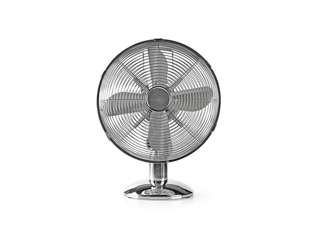 Nastavte si chrómovaný stolný ventilátor presne podľa svojich predstáv a vychutnajte si chvíľku osvieženia. Je vybavený výkonným motorom s 3 úrovňami nastavenia výkonu (nízka, stredná a vysoká), ľahko ovládateľnými tlačidlami a tlačidlom na kmitanie, ktoré sa nachádza v hornej časti a umožňuje ovládať prúdenie vzduchu. Ďalej disponuje nastaviteľnou naklápacou hlavicou, ktorú je možné smerovať.