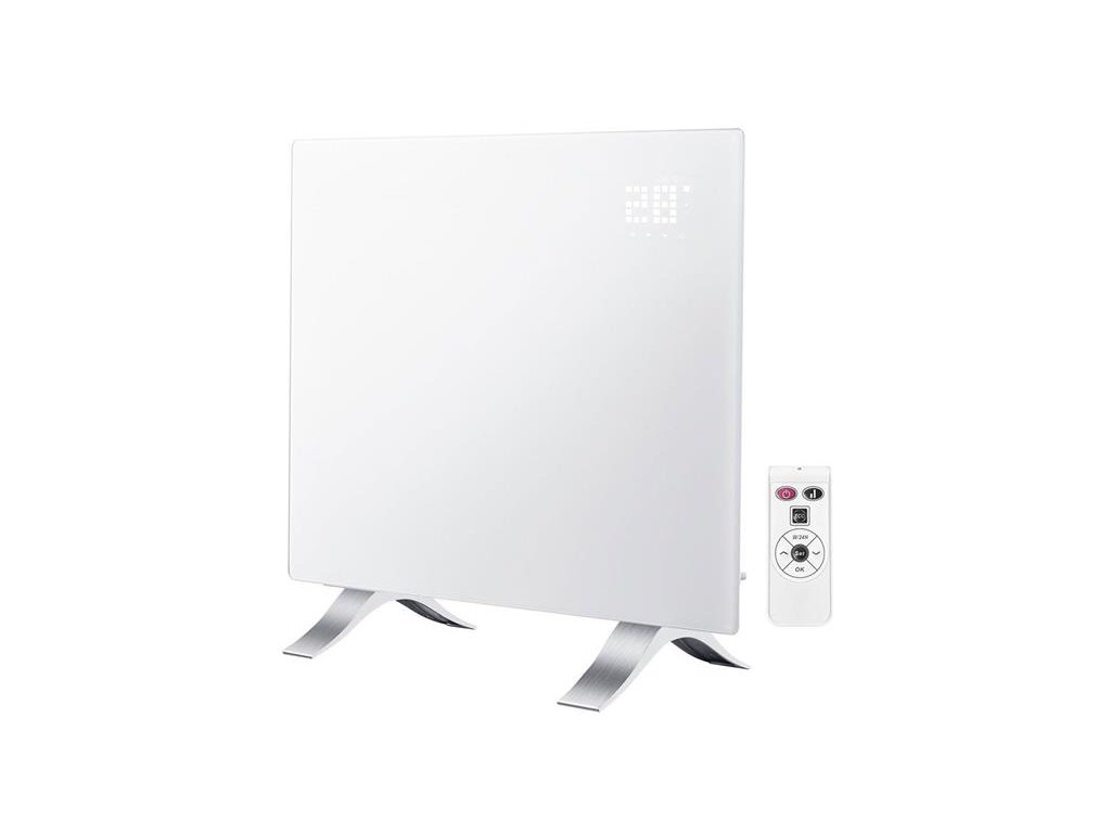 Výrobok sa vyznačuje moderným a elegantným dizajnom. Bol vyrobený z tvrdeného skla s vysokou pevnosťou. Hliníkový vykurovací systém novej generácie, pracuje bez hluku, zápachu, plynu alebo dymu. Teplo je cítiť ihneď po zapnutí konvektora. Dotykový LED displej je jednoduchý a intuitívny. Jednotka je vybavená presným termostatom s reguláciou teploty v rozsahu 5-45 °C. Diaľkové ovládanie uľahčuje programovanie prevádzkového režimu. Týždenný program v zariadení je možné ovládať ako diaľkovým ovládačom, tak dotykovým panelom. Ohrievač má ochranu proti prehriatiu, ochranu proti prevráteniu a ochranu pred deťmi, čo ovplyvňuje bezpečné používanie. Výrobok disponuje funkciou proti zamrznutiu pre udržanie minimálnej teploty v miestnosti a funkciou detekcie otvorených okien. Ohrievač je možné postaviť na podlahu alebo namontovať na stenu - hliníkové nohy a súprava na montáž na stenu sú súčasťou balenia. Tento výrobok je vhodný iba na príležitostné použitie alebo na použitie v dobre izolovaných miestnostiach.