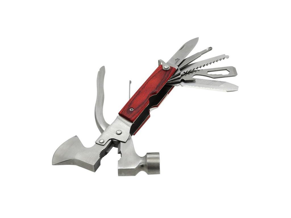 Najvýraznejšími časťami sú kladivo a sekerka. Po rozopnutí poistky na konci rukoväte, sa v prednej časti odhalia čeľuste, ktoré môžu byť použité ako kombinované kliešte. Ďalej sa ponúka klasický nôž dĺžky 7 cm, krížový skrutkovač najbežnejších rozmerov, pílka na drevo, odstraňovač šupín rýb a pilníkom so zakončením, ktorý sa dá použiť ako plochý skrutkovač. Posledným nástrojom je otvárač, kombinovaný imbusovým nástavcom.