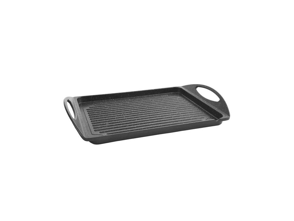 Doska grilovacie ORION Grande 42 x 27 cmDoska na grilovanie s ušami s vrúbkovaným povrchom má veľmi kvalitný nepriľnavý povrch PFLUON GRANIT, na ktorom pripravíte výborné steaky s minimálnou potrebou tuku. Grilovať môžete mäso, zeleninu, ryby, údeniny.