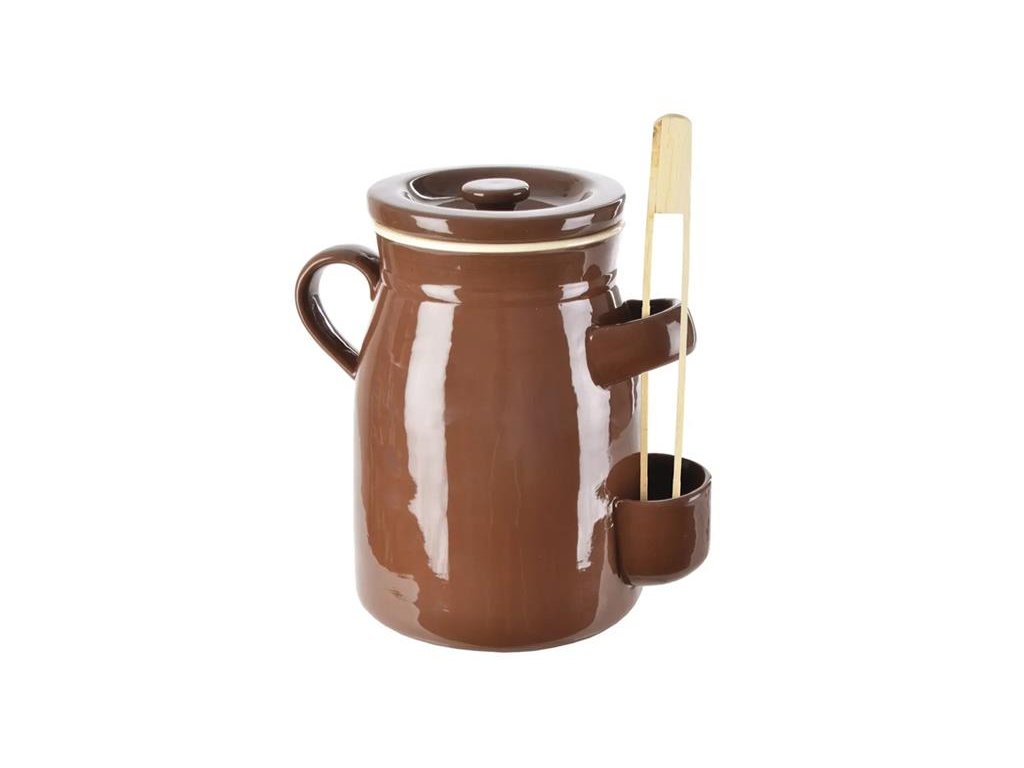 Hrniec kyseláč nájde všestranné uplatnenie vo vašej kuchyni. Slúži najmä na prípravu doma nakladaných pokrmov, ako sú kvasáky, utopenci, ryby, syry a ďalšie lahôdky nakladané do oleja alebo octového nálevu. Hrniec je vyrobený z úžitkovej glazovanej keramiky, ktorá neprepúšťa svetlo, udržuje stálu teplotu a potraviny potom získajú lepšie podmienky na dozretie a správnu chuť. Súčasťou hrnca je keramická pokrievka a drevené kliešte na vyberanie uložených potravín. Hrniec má 2 bočné uchá a vrecko na zachytenie odkvapkávajúcej tekutiny z klieští.