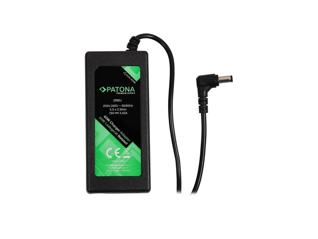 Nabíjačka ASUS 19V/3.42A 65W 5.5x2.5mm premium PATONA PT2560Sieťový zdroj pre notebooky. Balené v papierovej krabici.Součásti balenia je aj sieťová šnúra do zásuvky.