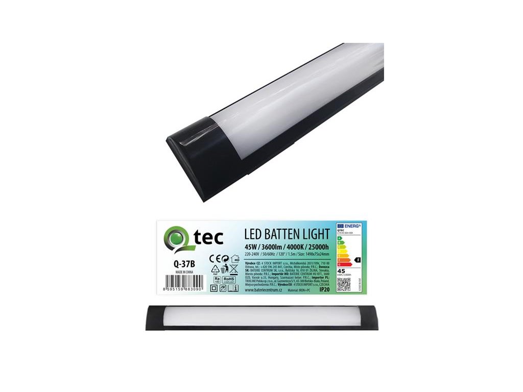 LED podlinkové energeticky úsporné svietidlo 45W 3600lm Batten Light Q-37B Qtec. Vyžaruje príjemnú neutrálnu bielu farbu svetla 4000K. Svietidlo má široké, praktické využitie je možné namontovať do interiéru napr. nad kuchynskú linku, do chodieb, hál, kancelárií, do jedálne, kaviarne, obchodu, dielne, garáže a pod. V ponuke máme svetlá v 2 farebných variantoch v čiernej av bielej.