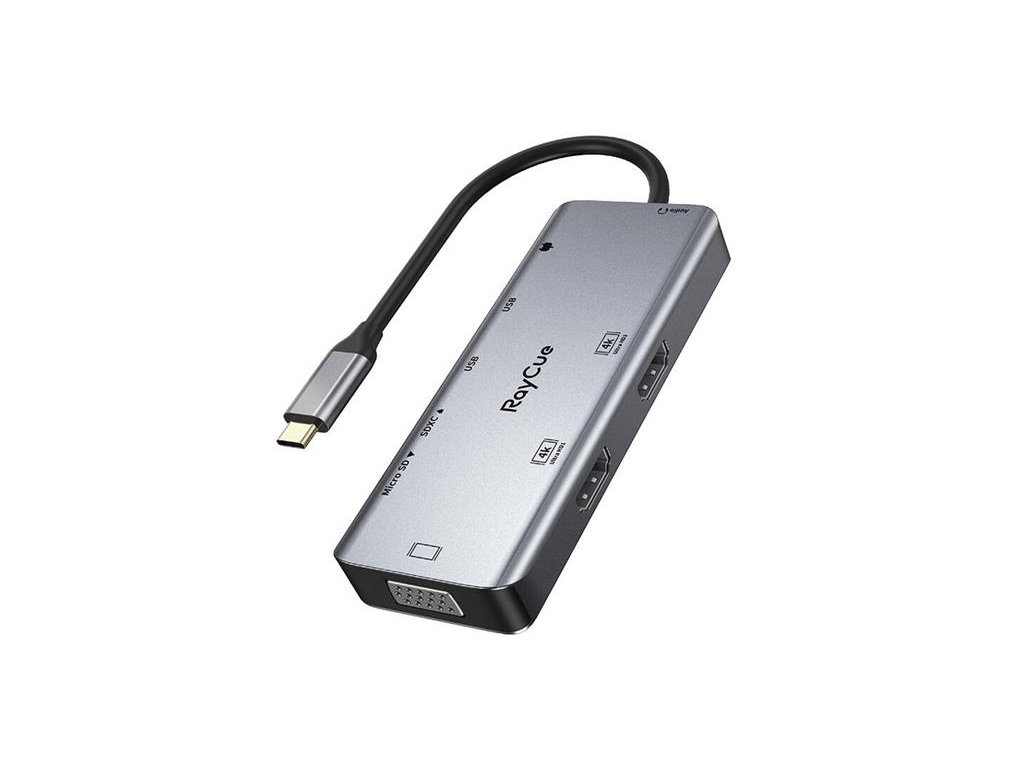 RayCue rozbočovač 9-v-1 rozšíri možnosti vášho zariadenia! Disponuje až 9 portami, vrátane USB-C, USB-A, HDMI, VGA, audio alebo pamäťových kariet, takže je ideálnym nástrojom pre každého, kto pri práci vyžaduje flexibilné riešenie. Jeho malá a ľahká konštrukcia znamená, že vás môže sprevádzať takmer kdekoľvek a je pripravený sa kedykoľvek pripojiť.