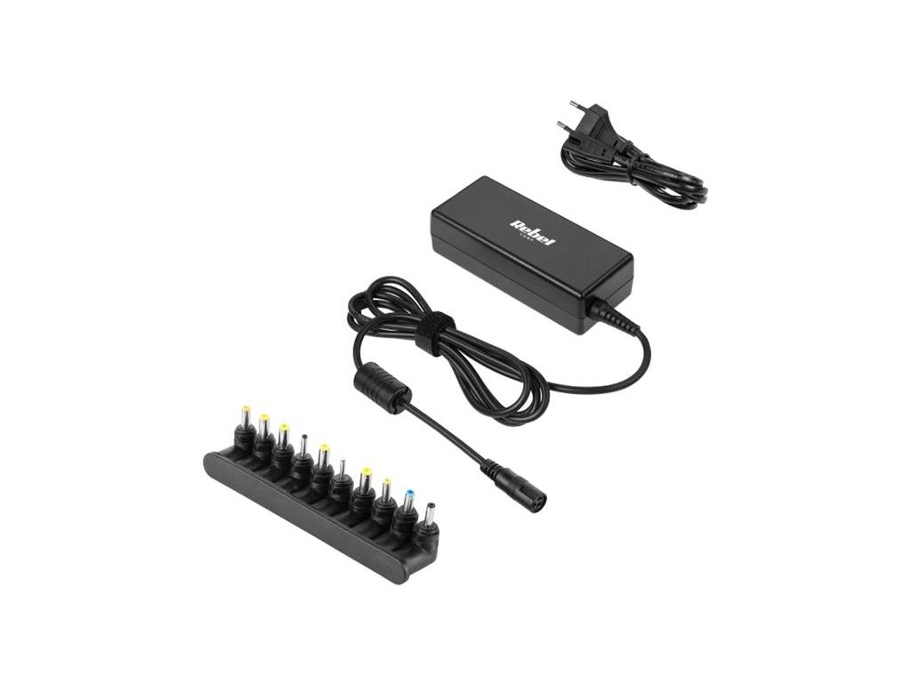 Adaptér pre notebooky REBEL 45W univerzálnyUniverzálny 45W napájací adaptér pre notebooky s káblom a 10 zástrčkami