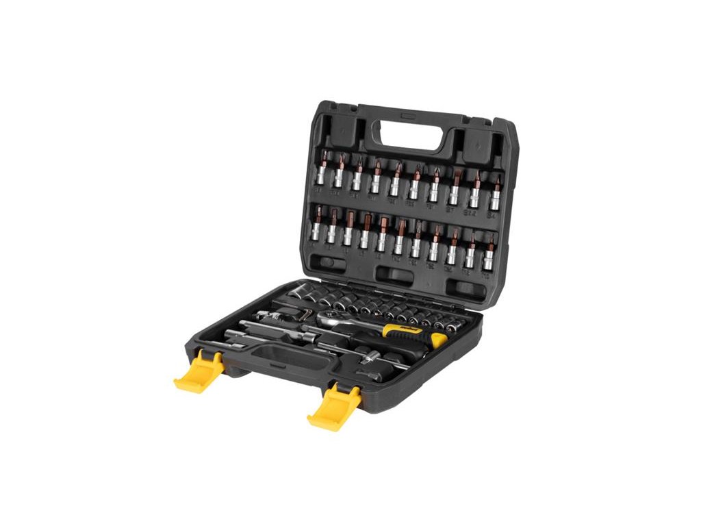 Vďaka pogumovanej rukoväte račne je použitie nástroja mimoriadne pohodlné aj pri dlhodobej práci. Sada obsahuje širokú škálu nástrčných kľúčov, kľúčov a nástavcov, čo zaisťuje všestrannosť v rôznych aplikáciách.