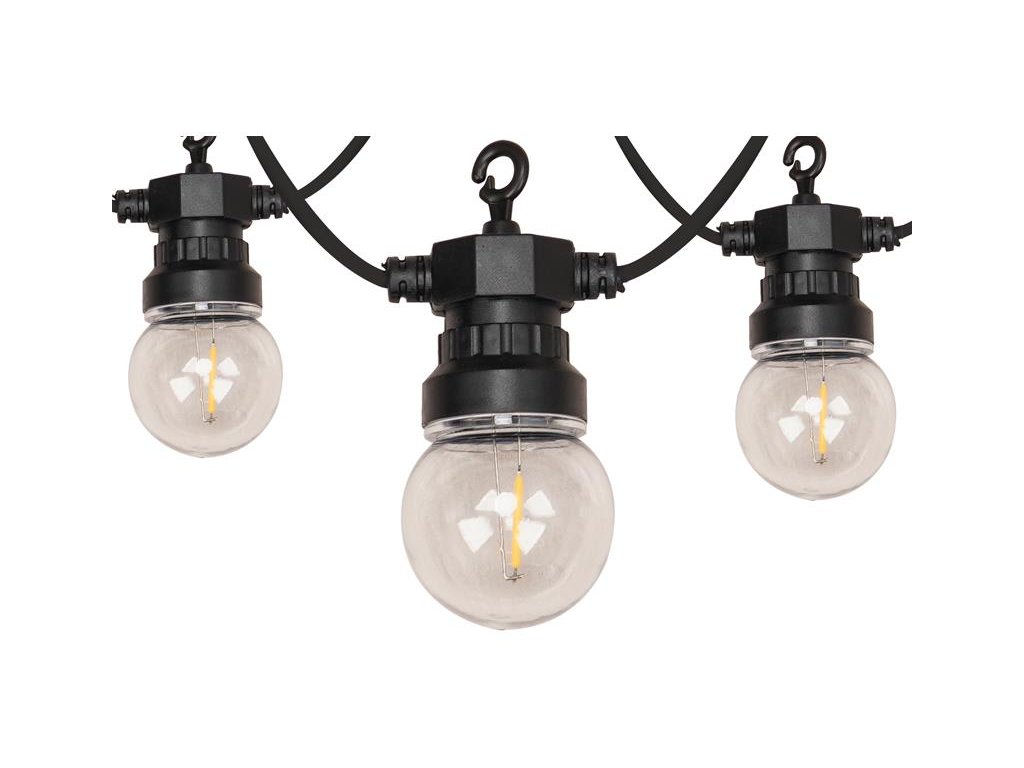 - 10 LED diód umiestnených na 5m kábli v čírych plastových žiarovkách G45