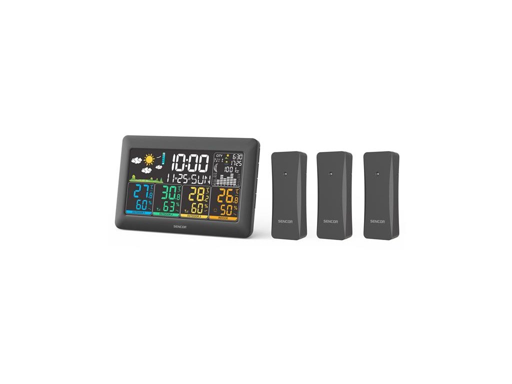 Námrazy, búrky, letné horúčavy a ďalšie rozmary počasia vedia zmeniť plán dňa. S meteostanicou SENCOR SWS 6300 vás však neprekvapí. Umiestnite ju na príhodné miesto v domácnosti s prístupom k elektrickej sieti alebo vložte 3 batérie AA. Von na záhradu alebo na balkón patria vonkajšie čidlá, ktoré sú napájané batériami (2× AA) a fungujú bezdrôtovo. Môžete ich umiestniť až na 80 metrov od meteostanice. Po niekoľkých minútach zbierania informácií čidla vyšlú aktuálne dáta o vonkajšom počasí, a tie sa zobrazia na farebnom displeji vrátane predpovede až na 12–24 hodín. Tri čidlá sú súčasťou balenia.