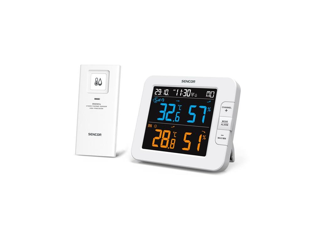 Meracia stanica zobrazuje digitálne hodiny s dátumom a možnosťou voľby medzi formátom času na 24 a 12 hodín. Sú plne synchronizované pomocou internetového pripojenia. Môžete si nastaviť budík s opakovaným budením a umiestniť stanicu na nočný stolík pre príjemný štart každého dňa. Aby bola stanica dobre čitateľná, alebo aby večer nerušila, je možné nastaviť jas v 2 a kontrast dokonca v 15 krokoch. Okrem priloženého bezdrôtového senzora je možné do tejto viackanálovej stanice pripojiť až 6 ďalších senzorov. Múdra meracia stanica od značky Sencor je praktickým doplnkom každej domácnosti.