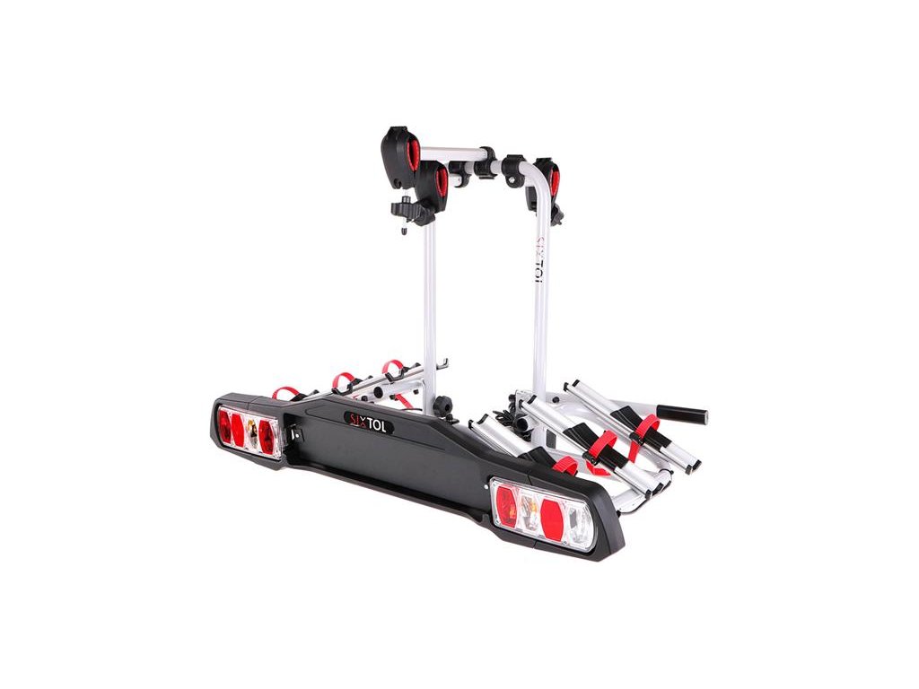 Spoľahlivý nosič bicyklov na upevnenie na guli ťažného zariadenia BIKE 3 pre 3 bicykle. Nosič je vyrobený z ocele a hliníka. Nosič disponuje jednoduchým systémom upevnenia, so sklápaním na prístup do kufra, s kompletne osvetleným panelom a miestom pre registračnú značku vozidla. Upevnenie kolesa do nosiča sa zaobíde bez náradia, vykonáva sa uchytením držiaka na rám a dotiahnutím pásikov na kolesách umiestnených na základni. Mechanizmus je uzamykací a nehrozí tak odcudzenie kolesa. Zaisťovacie koliesko na upevnenie bicykla je nutné dôkladne dotiahnuť, aby sa prekonal odpor preklzu v zamknutej polohe. Nosič je zhotovený z ocele a každá zo základní bicykla je z hliníka. Nosič je vybavený panelom s osvetlením a miestom na uchytenie registračnej značky (SPZ). Svetelný panel je pripojený k zásuvke ťažného zariadenia vozidla pomocou 13-pólového konektora a je vybavený kompletnými zadnými svietidlami, vrátane osvetlenia EČ (ŠPZ). Aj napriek veľkým rozmerom nosiča, je stále umožnený prístup do kufra a to vďaka dômyselnej konštrukcii a možnosti sklápania celého nosiča.