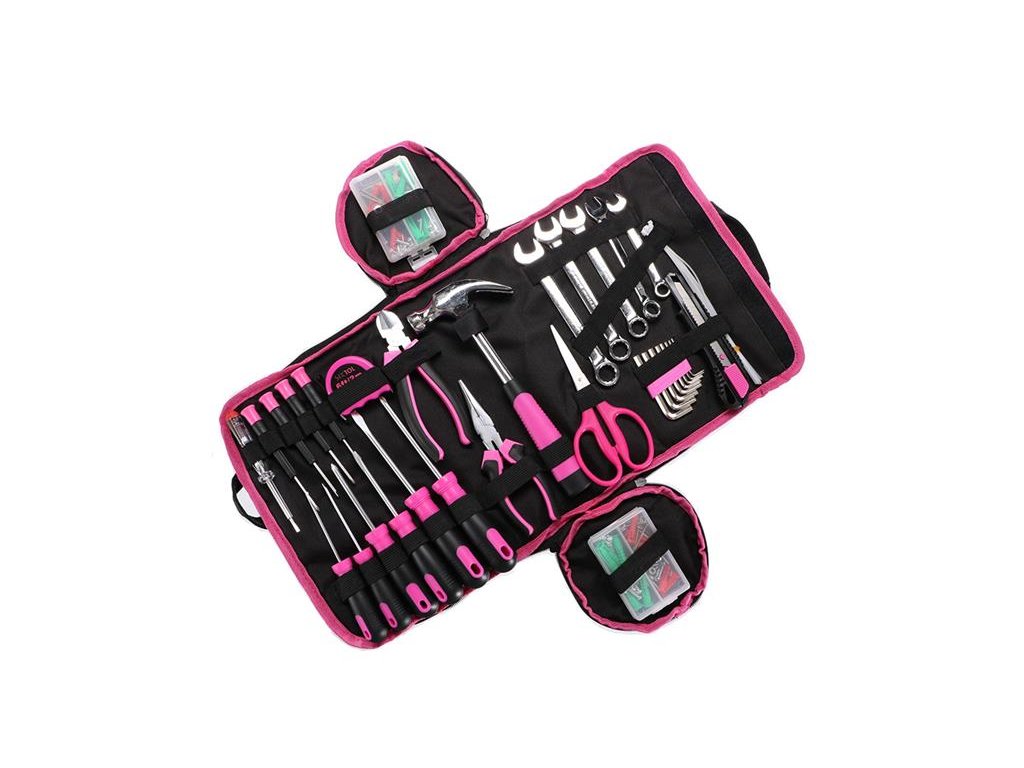 Kvalitná sada náradia v praktickej taške SIXTOL HOME PINK 120 BAG obsahujúce náradí pre každú prácu doma aj v dielni.