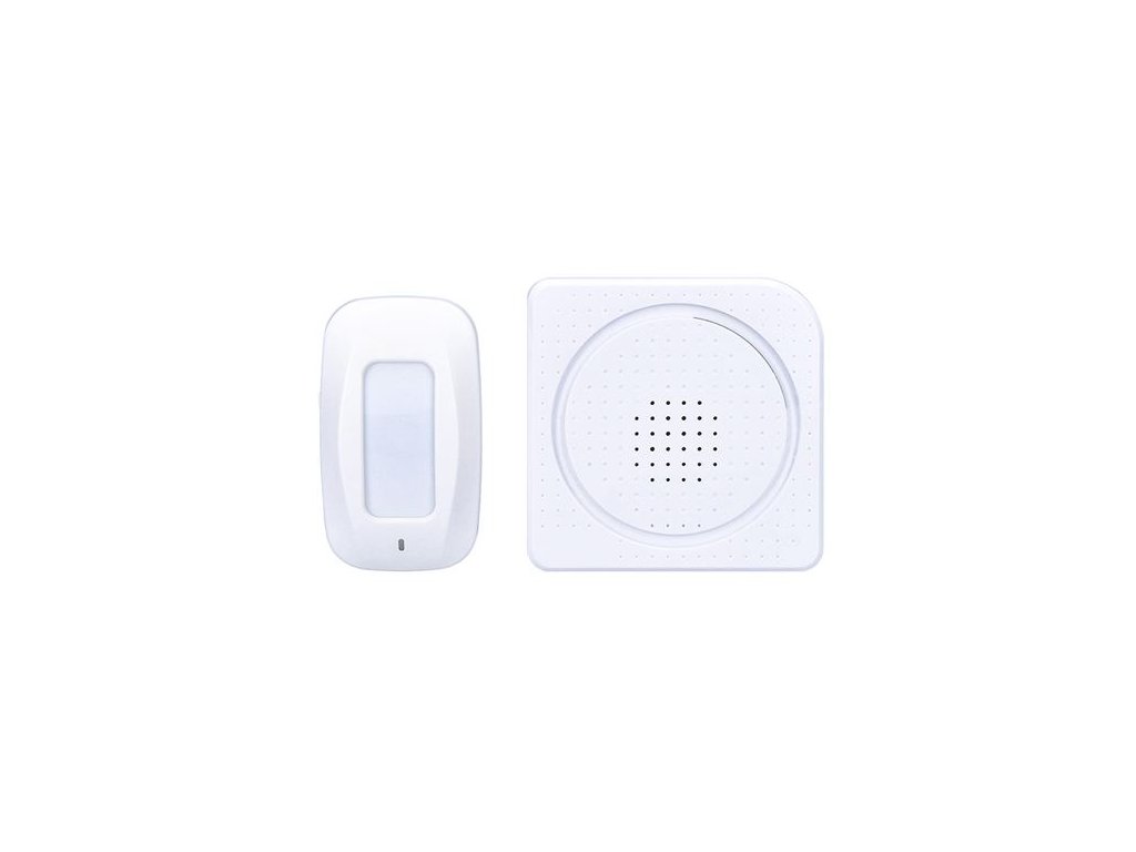 Hlásič pohybu/gong s bezdrôtovým senzorom - PIR čidlo Technické parametre: - automatický režim: vyšle signál pri detekcii pohybu - hlasitosť: 65 - 80 dB(A) - dosah signálu: max. 40m bez prekážok - operačný rozsah: - detekcia pohybu: 0-8m - uhol záberu: 15° vertikálne - uhol záberu: 100° horizontálne - 36 nastaviteľných melódií - 3D otočný stojan senzora, montážne otvory na stenu - napájanie: - prijímač: 3 x AA alkalické batérie (nie sú súčasťou balenia) - senzor: 3 x AAA alkalické batérie alebo externá USB nabíjačka 5V DC (nie sú súčasťou balenia) - vhodný pre obchody, firmy, kancelárie - farba: biela