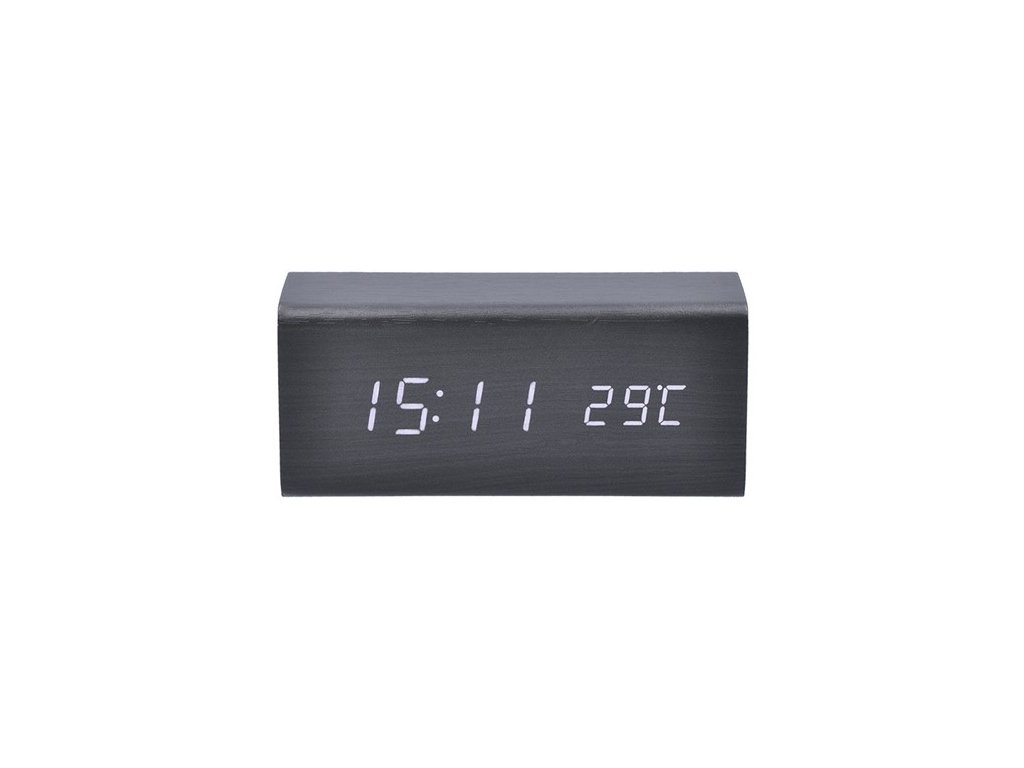 SOLIGHT Hodiny s budíkem,SOLIGHT CA01B bílé LED podsvícení, černé dřevo