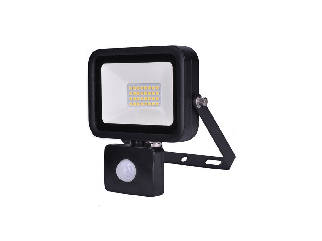 LED reflektor SOLIGHT PRO se senzorem, 30W, 2550lm, 5000K, IP44, WM-30WS-L Světelný zdroj: 30W SMD LED Světelný tok: 2550lm Teplota chromatičnosti: 5000K (studená bílá) Životnost: 30.000 hodin Krytí: IP44 (Ochrana proti stříkající vodě, vhodné pro venkovní použití) Světelný kužel: 120° Detekční úhel senzoru: 120° Detekční vzdálenost: max. 9m (do 24°C) Nastavení času svícení: 10s - 5min Nastavení světelné citlivosti: 3-2000LUX Napětí: AC 220V - 240V, 50Hz Provozní teplota: -30 až +50°C Rozměry: 180 × 240 × 30mm Materiál: tlakově litý hliník Barva: černá