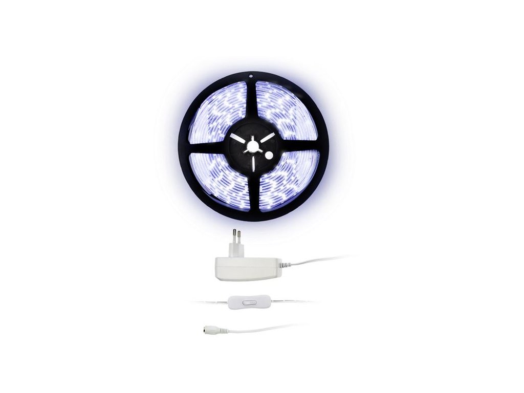 LED světelný pás s testrem, 5m, sada s 12V adaptérem, 4,8W/m, IP20, studená bíláLED světelný pás + tester