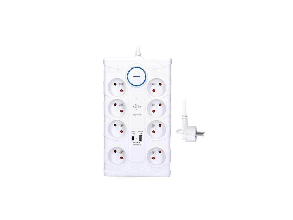Spoľahlivá prepäťová ochrana s integrovanou USB nabíjačkou chráni vaše zariadenie proti náhlym výkyvom napätia. Vďaka ôsmim zásuvkám a dvom USB portom je ideálny do domácnosti aj kancelárie. S maximálnou záťažou až 3680 W zvládne aj energeticky náročnejšie spotrebiče.