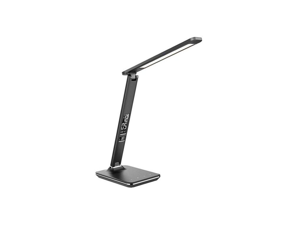Svítidlo stolní LED stolní lampička s displejem, 9W, volba teploty světla, kůže, černá WO45-B Stolní lampička s LED světelným zdrojem a designem černé kůže Design této LED lampičky je vhodný do kanceláře i do domácnosti. V tomto stolním svítidle využíváme moderních LED diod, které mají vysokou životnost a svou nízkou spotřebou jsou šetrné k životnímu prostředí. Rozsvítíte ji dotykovým spínačem, který je umístěn na viditelném místě a lampičku tak lze snadno ovládat. Tato LED lampa je vybavena funkcí stmívání, díky které si můžete nastavit úroveň světla přesně podle svých představ. Šetříte tak energii i vaše oči. Naši stolní lampičku lze použít jako noční světlo na čtení a klidné usínání. Umožňuje změnu barvy světla od studené bílé, která je vhodná pro maximální pracovní nasazení, přes neutrální bílou pro simulaci denního světla, až po teplou bílou, kdy lampičku využijete pro večerní relaxaci u knížky. Díky tomu, že naše stolní LED lampička neobsahuje žádné ostré hrany nebo malé části, je vhodná i pro děti. Lampičku můžete naklápět a natáčet podle svých představ. Je vybavena protiskluzovou podložkou, díky které vám nebude klouzat po stole. Možnost volby 3 barev světla – teplá, neutrální bílá a studená bílá (3000K-6000K) Stmívatelná – 5-stupňové stmívání Displej s funkcí času, kalendáře, budíku a teploměru Protiskluzová základna s dotykovým vypínačem Energetická třída: A+ LED zdroj nelze měnit Technické údaje: Příkon světla: max. 9 W Světelný tok: max. 500 lm Napájení: AC 100-240V Materiál: ABS + PS Barva: černá