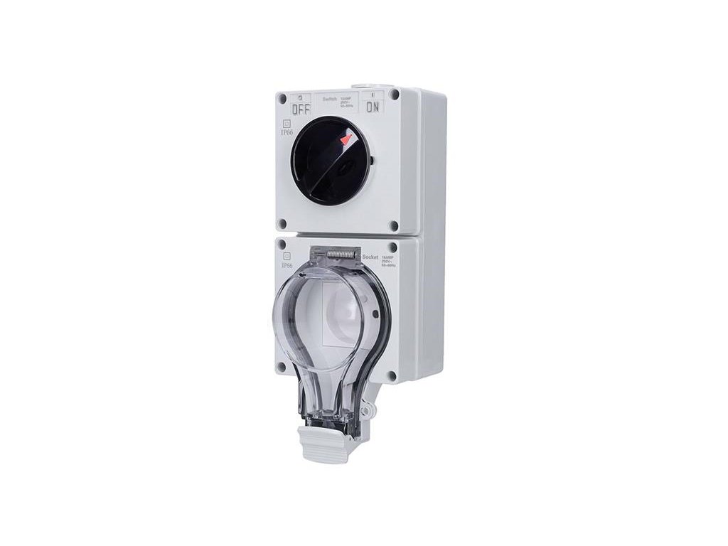 Profesionálna zásuvka 230V~/16A s vypínačom a ochranou IP66 Vonkajšia zásuvka s integrovaným vypínačom, priehľadným vekom a krytím IP66 ponúka maximálnu bezpečnosť v náročných podmienkach. Je plne chránená proti prachu, tryskajúcej vode zo všetkých smerov a úrazom elektrickým šokom pri kontakte s nástrojmi či drôtmi väčšími ako 1 mm. Vďaka tomuto vysokému stupňu ochrany je ideálny na použitie v priemyselnom aj domácom prostredí, a to aj vo vlhkých alebo prašných podmienkach.