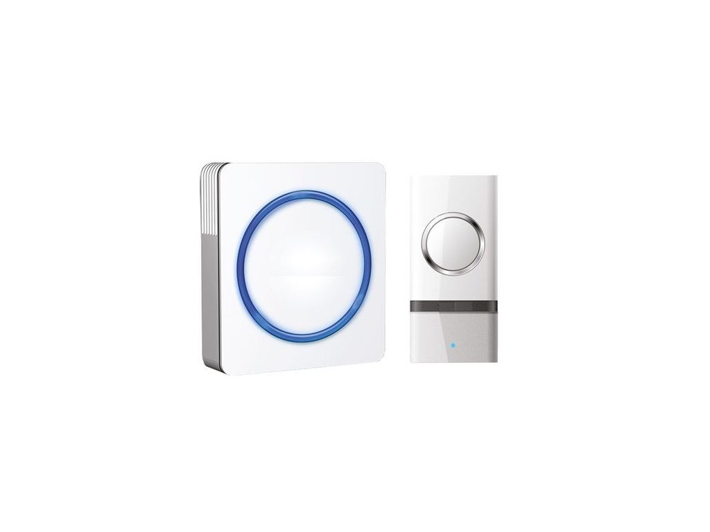 Zvonček bezdrôtový 1L20 Bezdrôtový zvonček plug-in, 120m, nastavenie hlasitosti, biely, vode odolný + 12V/23A batéria - 48 voliteľných melódií, z toho 16 polyfónnych - LED indikátor zvonenia na zvončeku aj tlačidle - tlačidlo s krytom na menovku - vodotesná ochrana tlačidla IP44 - nastavenie hlasitosti zvončeka - 3 stupne (50-90 dB) - uchytenie tlačidla pomocou samolepiacej podložky - farba: biela - dosah signálu na otvorenom priestranstve: 120 m - napájanie: - tlačidlo: 1x 12 V (LR23A) batéria (súčasťou balenia) - zvonček: 230V AC - plug-in - pracovná teplota: -10°C až +40°C
