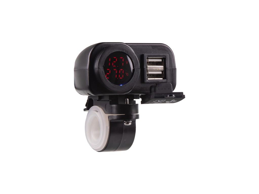 2x USB nabíjačka s voltmetrom a teplomerom, vhodné napr. pre motocykle, štvorkolky a iné.