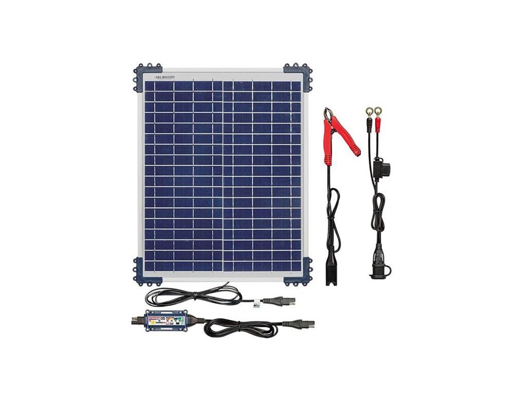 Inteligentný solárny systém OptiMate obsahuje solárny panel odolný proti poveternostným vplyvom a inteligentný kombinovaný regulátor nabíjačky a monitoringu OptiMate Solar, ktorý počas dňa nabíja a udržuje 12 V batériu av noci monitoruje a zobrazuje stav nabitia batérie. Širokospektrálna polykryštalická technológia solárneho panelu generuje energiu aj pri slabom osvetlení, ktorú riadiaca jednotka OptiMate prevádza na prúdové pulzy účinnejšie na nabíjanie a údržbu 12V batérie. V noci sa inteligentný ovládač zmení na monitor batérie, ktorý poskytuje informácie o batérii každé 3 sekundy na ľahko čitateľnom LED paneli.