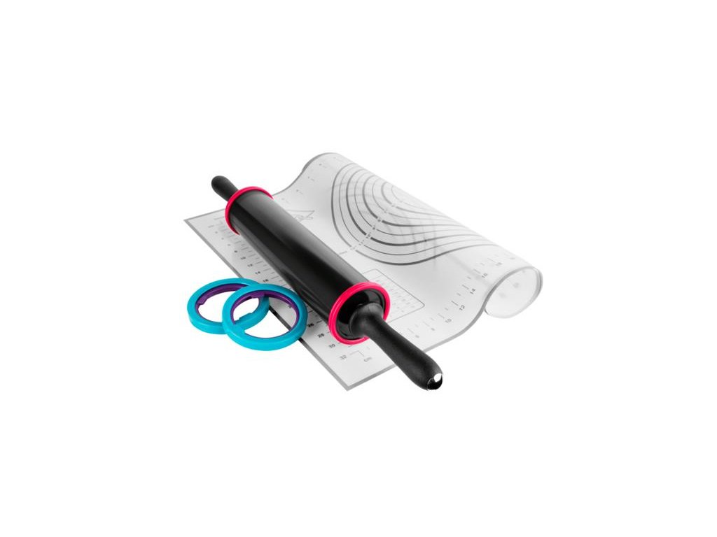 Súčasťou sady je aj valček, ktorého silikónový poťah sa nelepí na cesto a zaisťuje tak maximálne pohodlie pri práci. Navyše spolu so silikónovým valčekom získate 3 páry kotúčov, ktorých úlohou je regulovať hrúbku cesta.