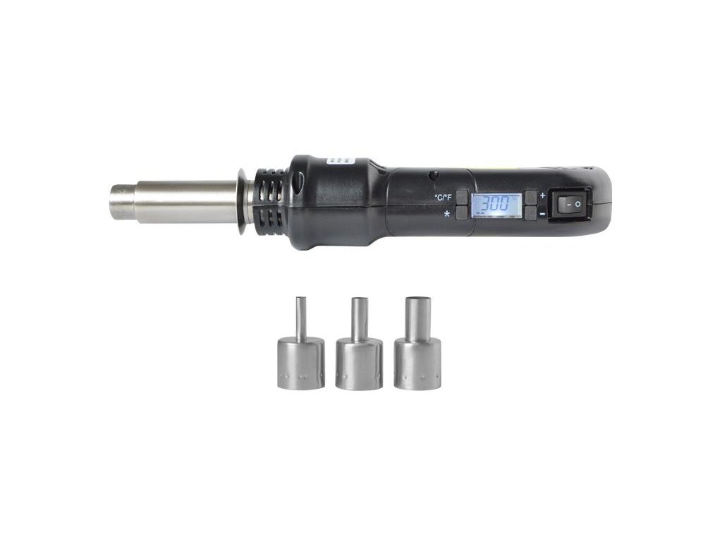 Teplovzdušná spájkovačka ZD-8907 příručníTáto príručná teplovzdušná vyfoukávačka ZD-8907 má teplotný rozsah 200°C - 500°C. Vďaka tomu sa skvele hodí na zmršťovacie hadičky, k odpájkovaniu citlivých obvodov SMD ako SOIC, CHIP, PLCC, BGA a pod. Chráni obvody pred poškodením statickou elektrinkou súčiastok. Uplatní sa ale aj v rade ďalších oblastí použitia, pri ktorých je dôležitý koncentrovaný tok horúceho vzduchu, napr. pri čistení 3D tlačiarní. Teplotu je možné nastaviť na LCD displeji. Množstvo vzduchu je možné regulovať pomocou rôznych hrotov, ktoré sú súčasťou dodávky. Pero je vybavené dvojkomponentnou rukoväťou s protišmykovou gumou, ktorá ponúka väčšie pohodlie a uľahčuje manipuláciu.