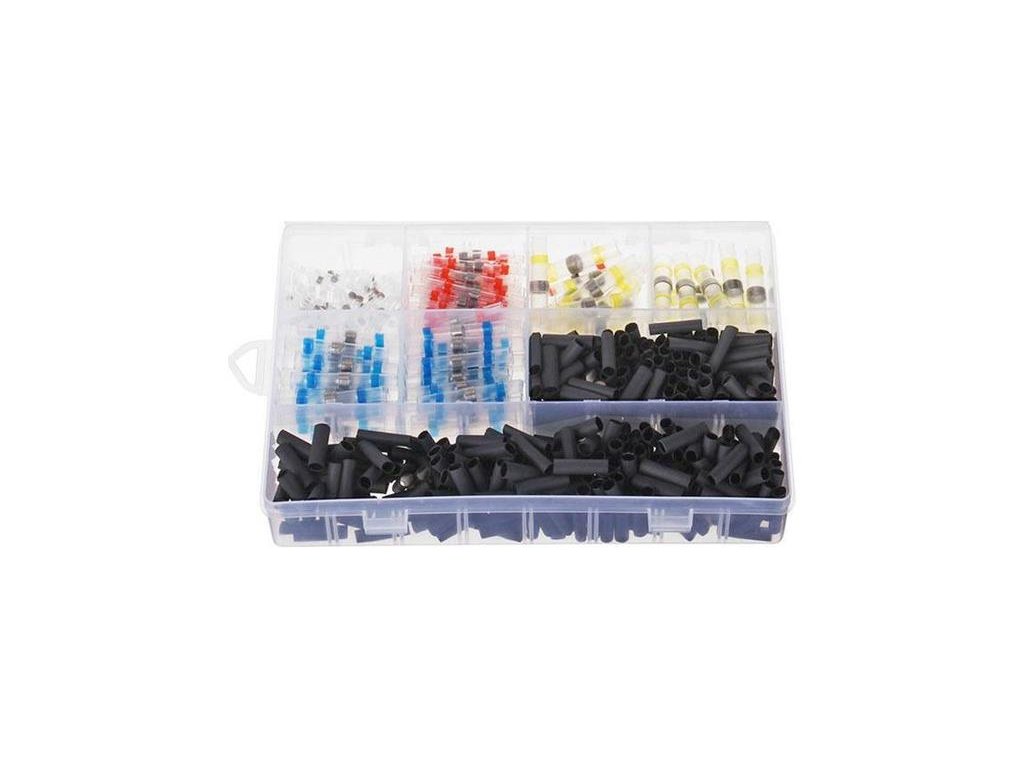 500ks káblových spojok s nízkoteplotnou SnBi spájkou a zmršťovacou bužírkou. Vhodné na spájanie automobilovej a inej kabeláže.