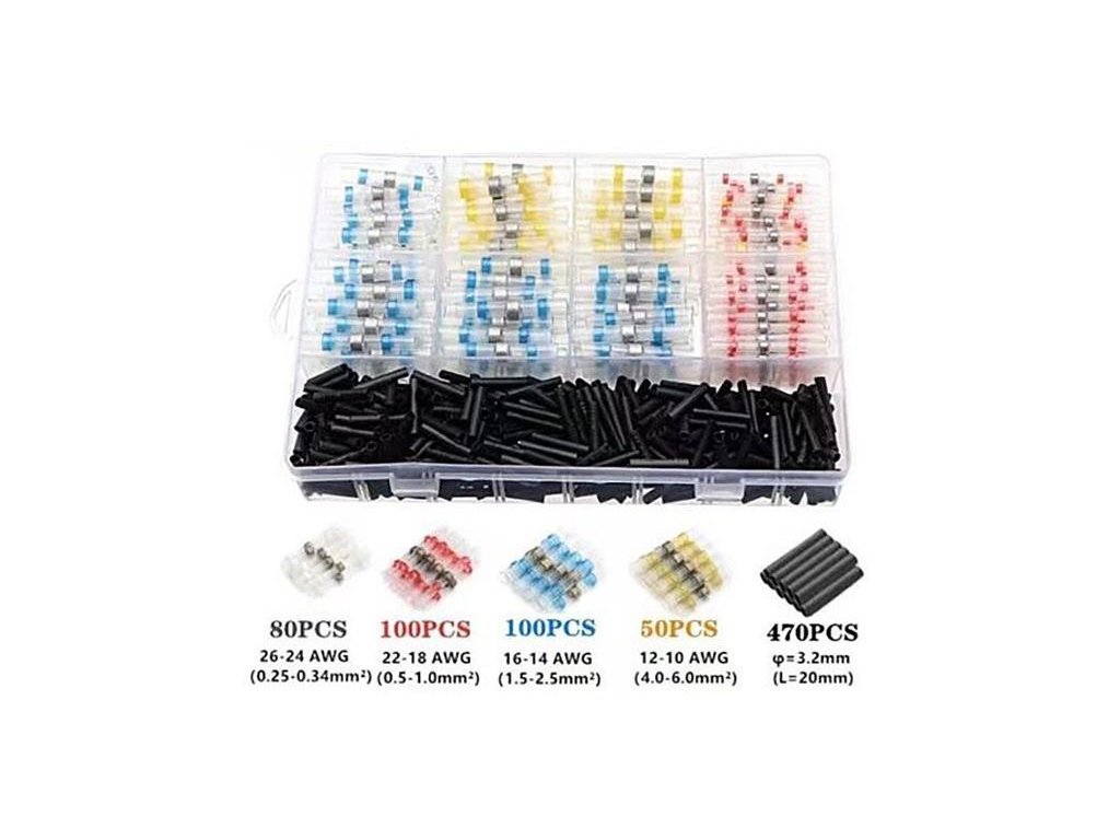800ks káblových spojok s nízkoteplotnou SnBi spájkou a zmršťovacou bužírkou. Vhodné na spájanie automobilovej a inej kabeláže.